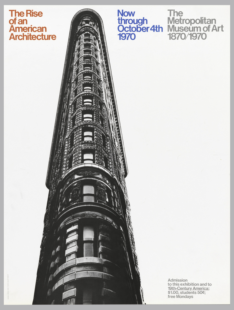 Poster, The Rise of an American Architecture; Designed by Arnold Saks (American, b. 1931); USA; offset lithograph on paper; 51.2 x 38.9 cm (20 3/16 x 15 5/16 in.); Gift of Arnold Saks; 1991-69-120