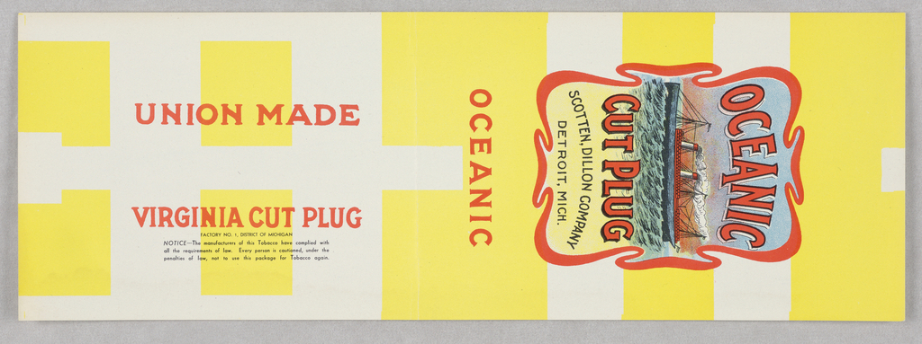 Tobacco Label (USA); Manufactured by Scotten-Dillon Co.; color lithograph; 31.1 x 10.8 cm (12 1/4 x 4 1/4 in.); Gift of Dr. Ellery Karl; 1991-76-7