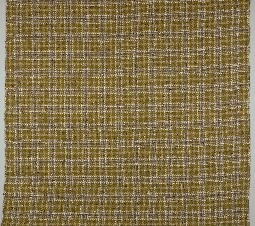 This is a Textile. It is dated 1965–66 and we acquired it in 1991. Its medium is wool and its technique is two 2&2 twill weaves 'stitched' together by a supplementary warp. It is a part of the Textiles department.