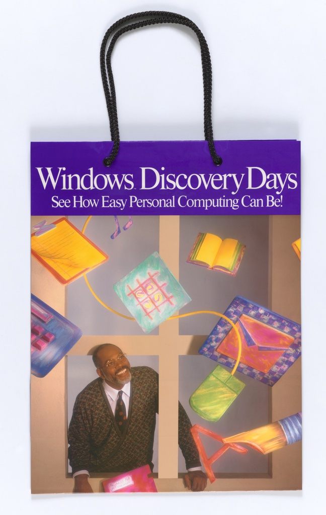 Shopping Bag, Microsoft: Windows Discovery Days; paper; 43.2 x 34.0 cm (17 x 13 3/8 in. ); Gift of Richard A. Manetta; 1992-106-32