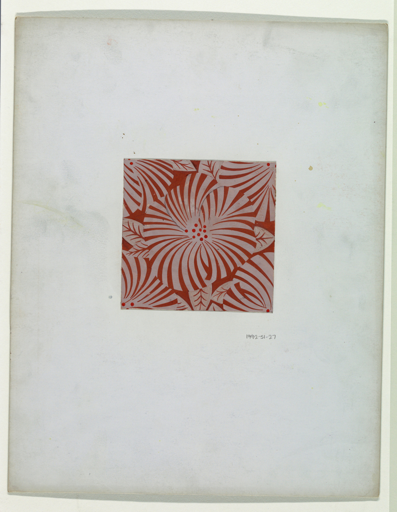 Drawing, Floral Pattern, Textile Design; Designed by Tommi Parzinger (American, b. Germany, 1903–1981); USA; brush and gouache, graphite on paper, lined; 11.3 x 11.5 cm (4 7/16 x 4 1/2 in.); Gift of Donald Cameron; 1992-51-27