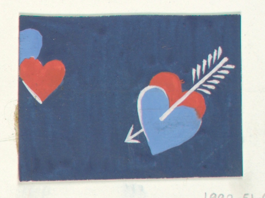 Drawing, Heart Motif, Textile Design; Designed by Tommi Parzinger (American, b. Germany, 1903–1981); USA; brush and gouache on paper; 3.9 × 5.3 cm (1 9/16 × 2 1/16 in.) Mount: 35.4 × 27.9 cm (13 15/16 × 11 in.); Gift of Donald Cameron; 1992-51-68