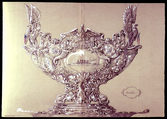 Drawing, Punchbowl for U.S.S. Louisiana; Designed by Reed & Barton (United States); USA; graphite, pen and ink, wash on cream wove paper; 34.4 x 38.9 cm (13 9/16 x 15 5/16 in.); Museum purchase through gift of Adam G. Norrie in memory of Eloise Lawrence Breese; 1992-69-1