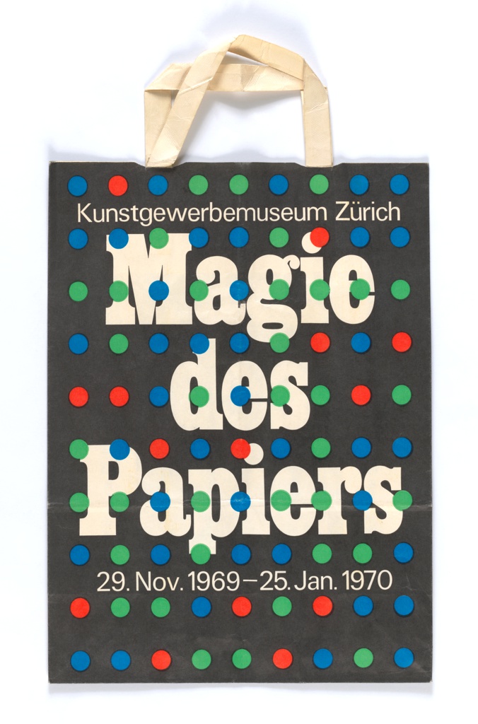<ref name=CH>{{cite web |url=https://www-4.collection.cooperhewitt.org/objects/18640897/ |title=Shopping Bag, Kunstgewerbe Museum Zurich |author=Cooper Hewitt, Smithsonian Design Museum |accessdate=19 December 2025 |publisher=Smithsonian Institution}}</ref>