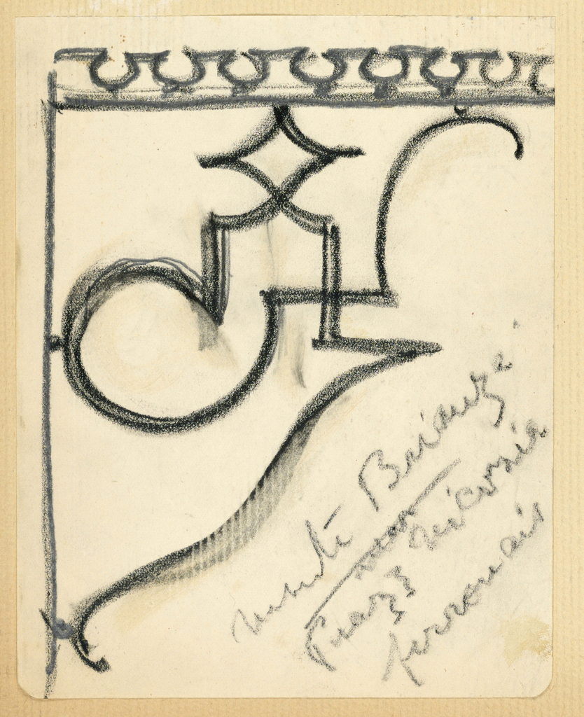 Drawing, Design for a Crenellated Cornice; Designed by William Hunt Diederich (American, b. Hungary, 1884–1953); USA; charcoal, graphite on paper mounted on ribbed paper; 77.2 x 13.5 cm (30 3/8 x 5 5/16 in.); Gift of Diana Diederich Blake; 1992-92-126