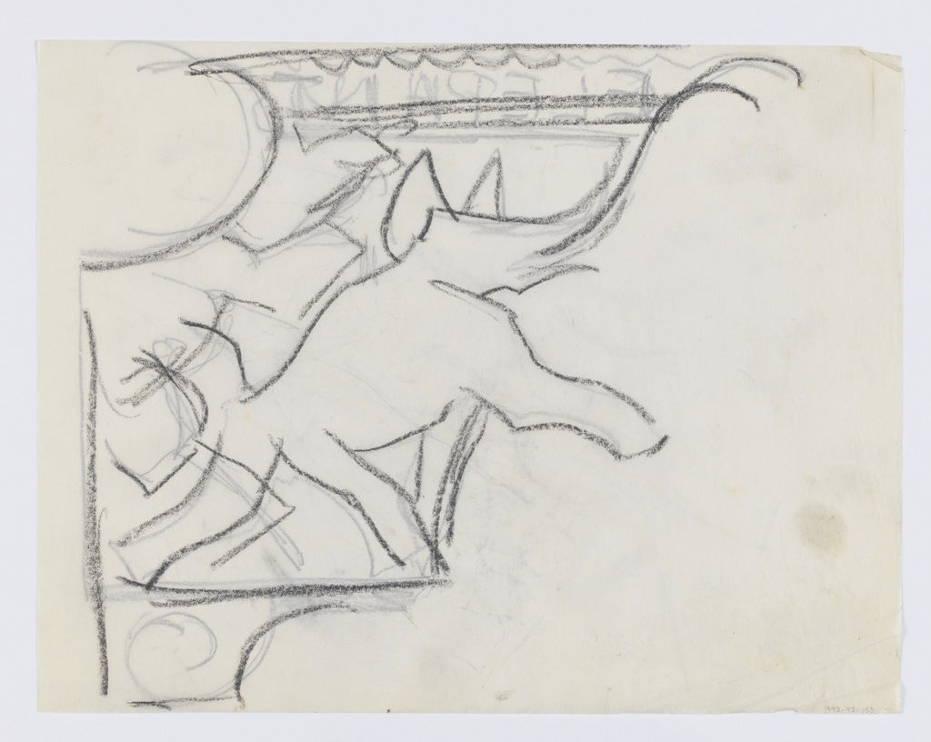 Drawing, Design for Signpost, Elephant; Designed by William Hunt Diederich (American, b. Hungary, 1884–1953); USA; charcoal on paper; 21.2 x 27.6 cm (8 3/8 x 10 7/8 in.); Gift of Diana Diederich Blake; 1992-92-153