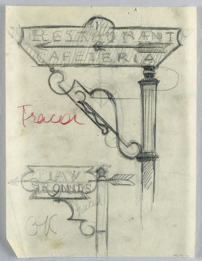 Drawing, Designs for Signposts; Designed by William Hunt Diederich (American, b. Hungary, 1884–1953); USA; graphite on paper; 28 x 21.5 cm (11 x 8 7/16 in.); Gift of Diana Diederich Blake; 1992-92-192