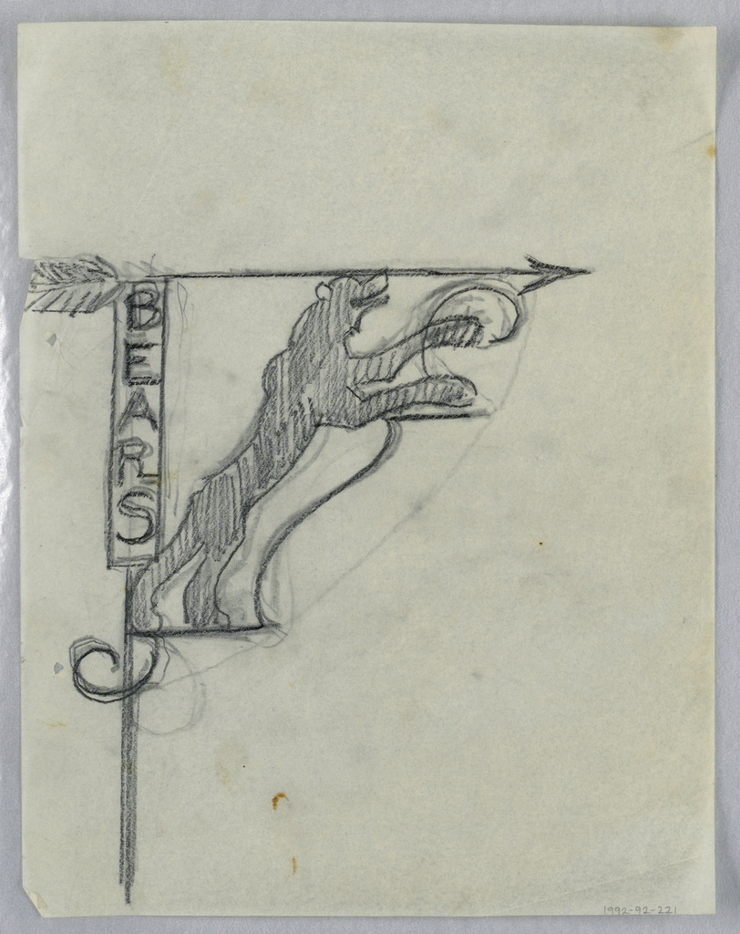 Drawing, Design for Signpost, Bear; Designed by William Hunt Diederich (American, b. Hungary, 1884–1953); USA; graphite on paper; 29.2 × 28 cm (11 1/2 × 11 in.); Gift of Diana Diederich Blake; 1992-92-221