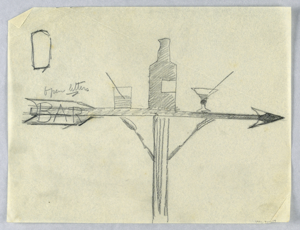 Drawing, Design for Signpost; Designed by William Hunt Diederich (American, b. Hungary, 1884–1953); USA; graphite on paper; 21.2 x 28 cm (8 3/8 x 11 in.); Gift of Diana Diederich Blake; 1992-92-224