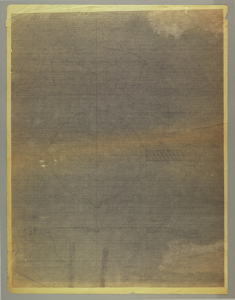 Inscribed in photoprint throughout with measurements; in designer's stamp: EVA S. ZEISEL DESIGNER 431 RIVERSIDE DRIVE NEW YORK/DATE: SEPTEMBER 1945/ TITLE: 8 1/2" CHICKEN FRYER NO. A-113