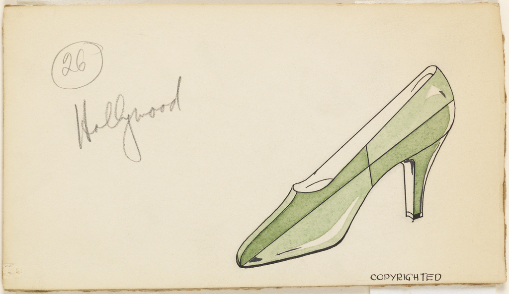 <ref name=CH>{{cite web |url=https://www-4.collection.cooperhewitt.org/objects/18644801/ |title=Drawing, Design for a Shoe, for Delman Shoe Company, New York City |author=Cooper Hewitt, Smithsonian Design Museum |accessdate=20 December 2025 |publisher=Smithsonian Institution}}</ref>