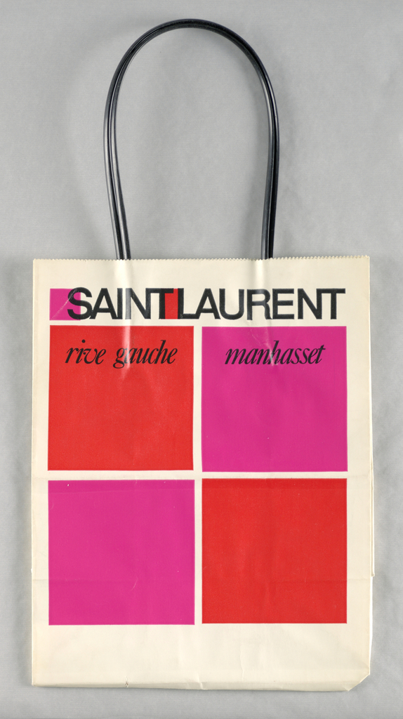 Shopping Bag, Yves Saint Laurent/Rive Gauche (Manhasset); Manufactured by Modern Arts Packaging; paper; black handles; 25.4 x 19.7 cm (10 x 7 3/4 in. ); Gift of Eric Ettlinger and family in memory of his cherished wife, Lyse; 1993-45-3
