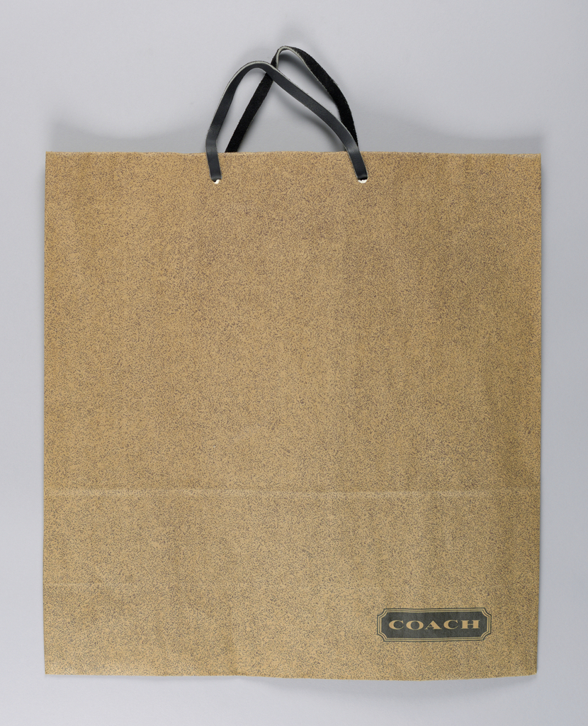 Shopping Bag, Coach: Brown Speckles; Manufactured by Canover Industries; Firm: Michael Peters Group; paper; brown leather handles; 48.3 x 45.7 cm (19 x 18 in. ); Gift of Eric Ettlinger and family in memory of his cherished wife, Lyse; 1993-45-36