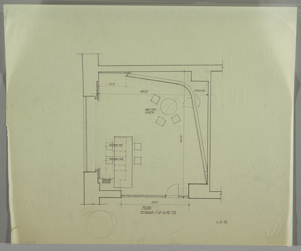 This is a Drawing. It was designed by Henry Dreyfuss Associates. It is dated June 12, 1953 and we acquired it in 1993. Its medium is graphite on tracing paper. It is a part of the Drawings, Prints, and Graphic Design department.