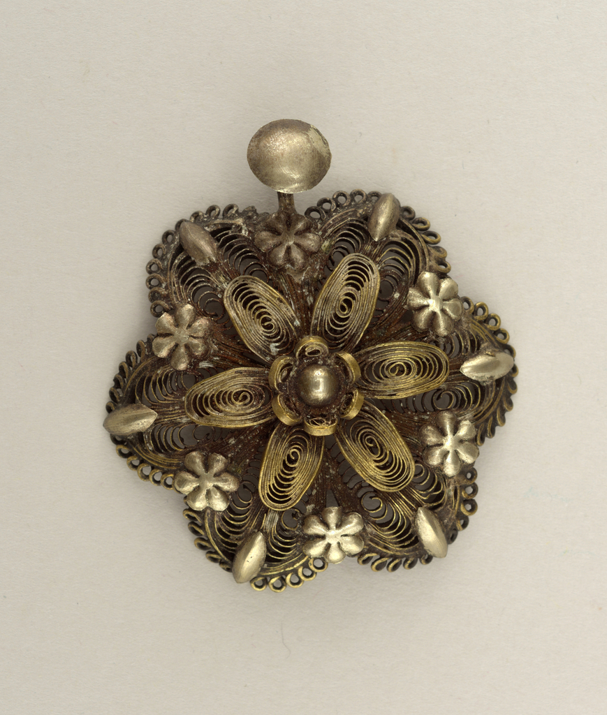 This is a Rosette. We acquired it in 1993. Its medium is silver (filigree). It is a part of the Product Design and Decorative Arts department.