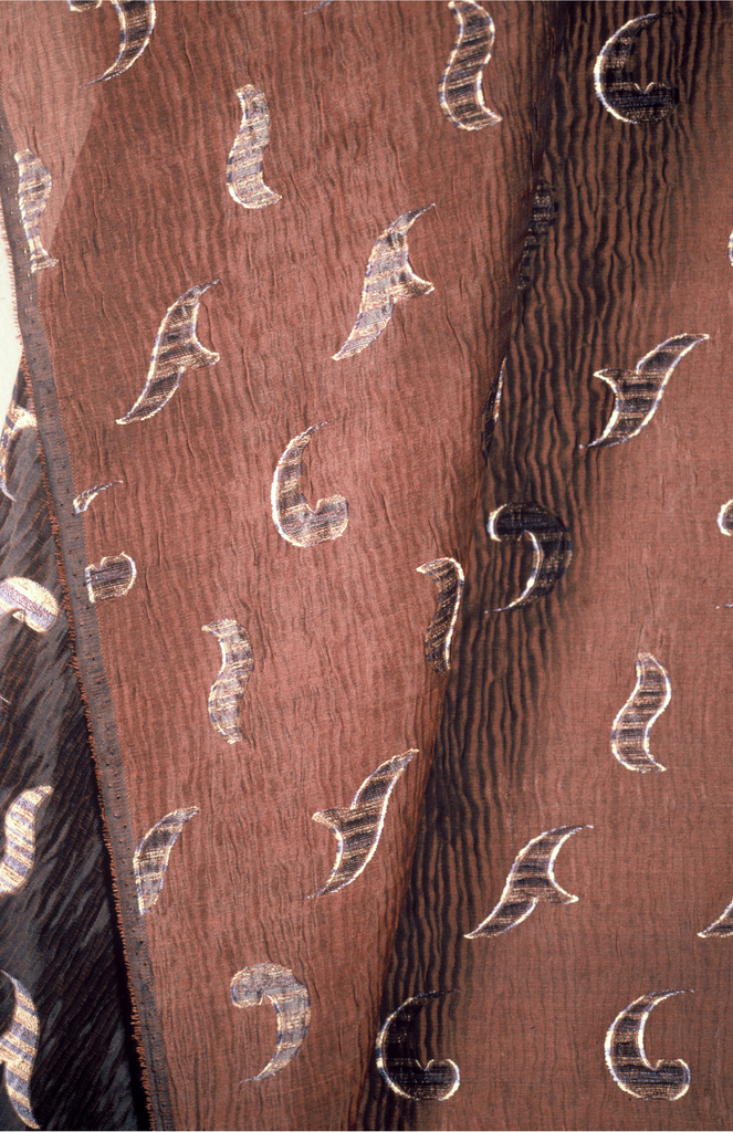 Textile, Carolina; Designed by Ulf Moritz (1939); Company: Sacho Hesslein; Germany; 74% silk, 26% polyester; Warp x Weft: 416.6 x 138.4 cm (13 ft. 8 in. x 54 1/2 in.); Gift of Sacho Hesslein; 1993-86-4
