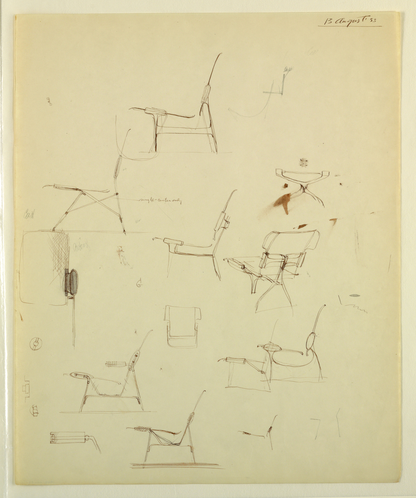 Drawing, Studies of chairs; Designed by Gerald Gulotta (American, 1921 - 2018); USA; off-white paper; Gift of Gerald Gulotta; 1993-89-39