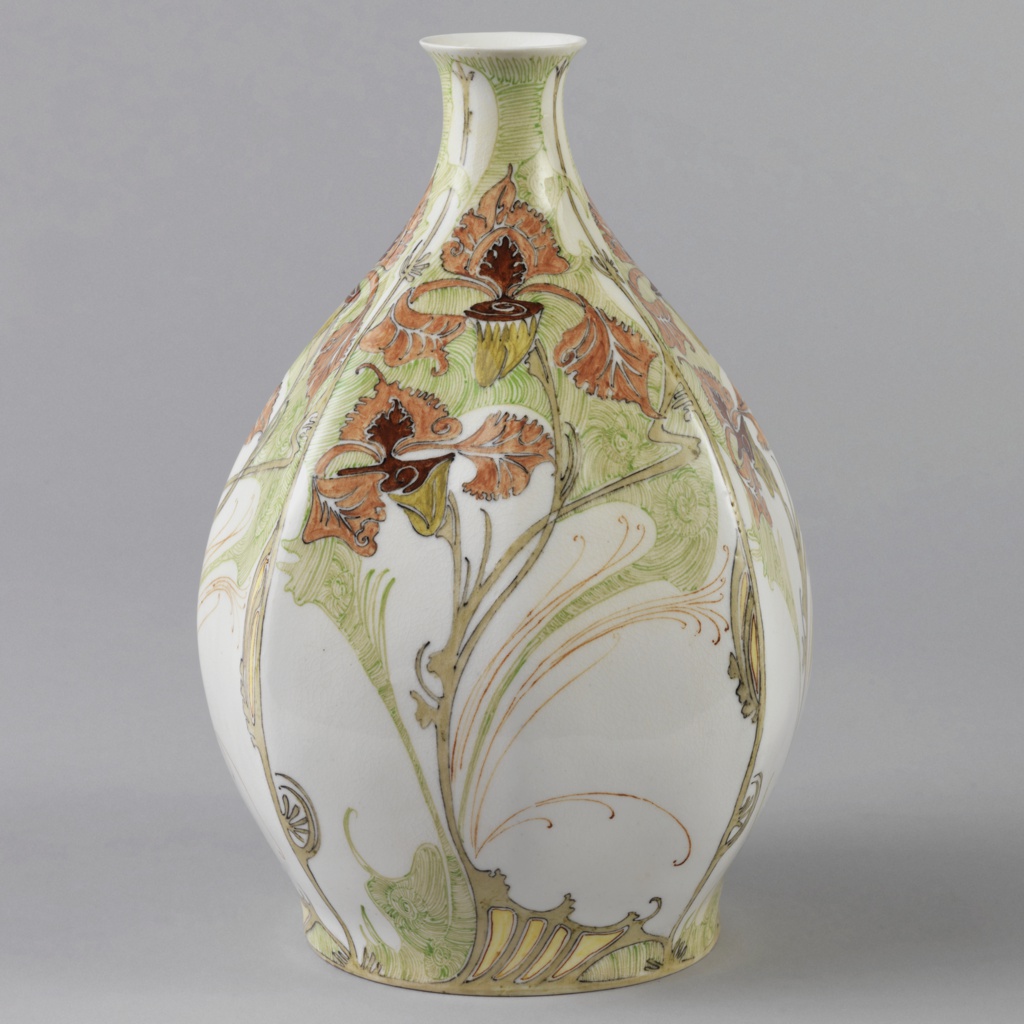 Vase Vase; Manufactured by Rozenburg Pottery and Porcelain Factory (Netherlands); Painted by Samuel Schellink (1876 – 1958); Netherlands; porcelain, vitreous enamel; 17.5 x 11 cm (6 7/8 x 4 5/16 in.); Gift of Arthur Altschul; 1994-117-6