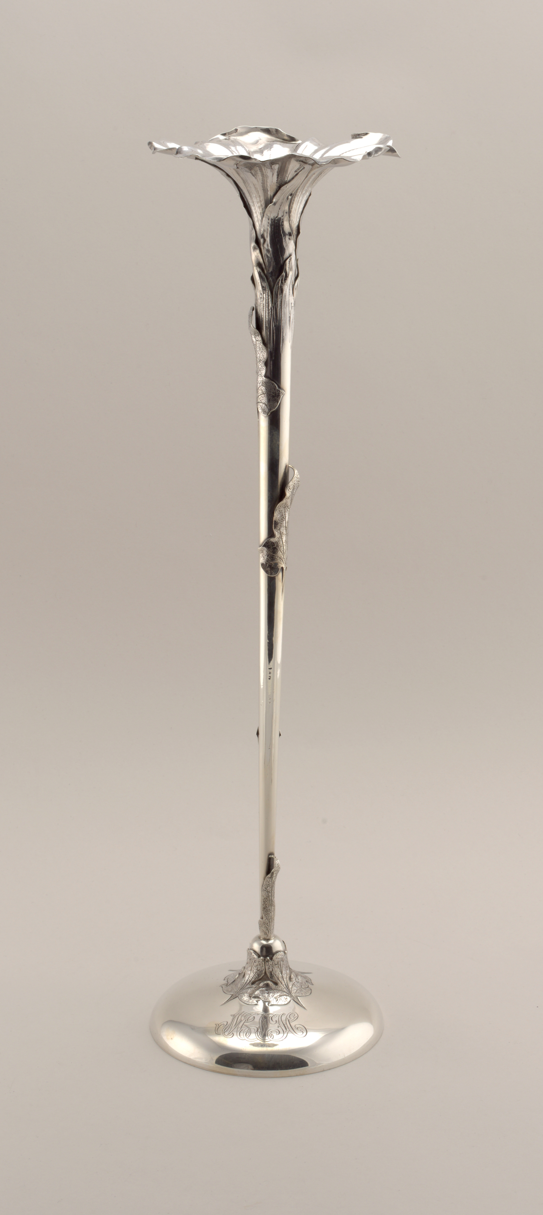 This is a Vase. It was manufactured by Redlich and Co. and retailed by Grogan Co.. It is dated ca. 1900 and we acquired it in 1995. Its medium is silver. It is a part of the Product Design and Decorative Arts department.