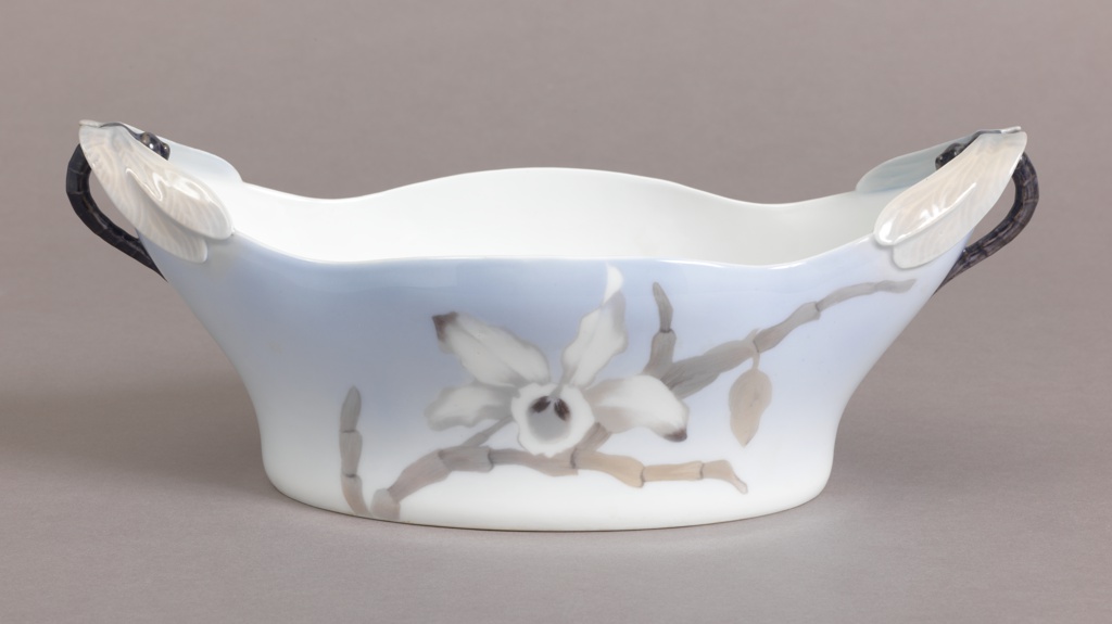 This is a Jardinière. It was designed by Arnold Krog and manufactured by Royal Copenhagen Porcelain Manufactory. It is dated ca. 1900 and we acquired it in 1995. Its medium is porcelain. It is a part of the Product Design and Decorative Arts department.