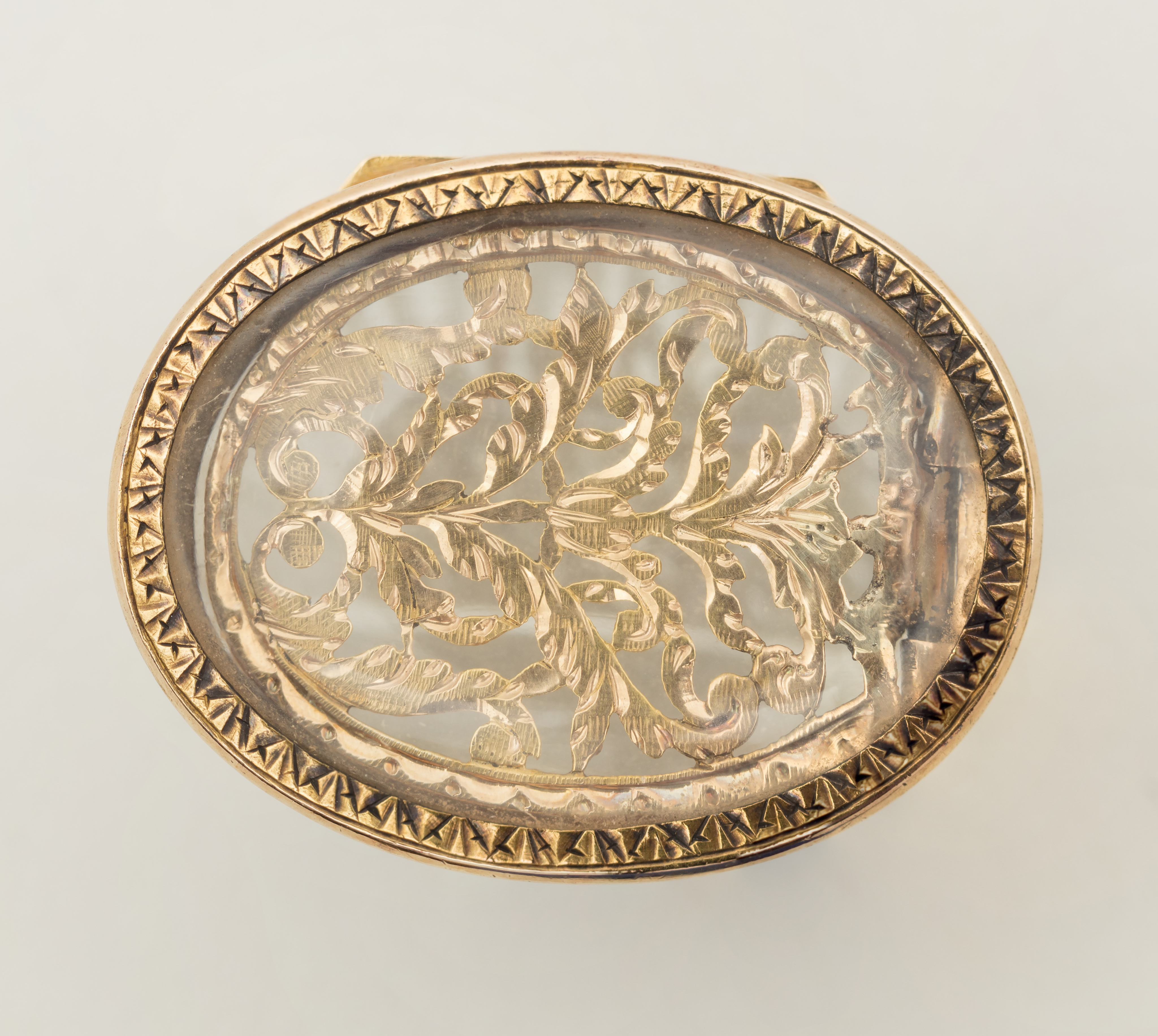 Box (possibly England); glass, gold; Overall: 2.3 x 1.7 x 1.3 cm (7/8 x 11/16 x 1/2 in.); Gift of the Panwy Foundation, from the collection of Maria Wyman; 1994-129-12