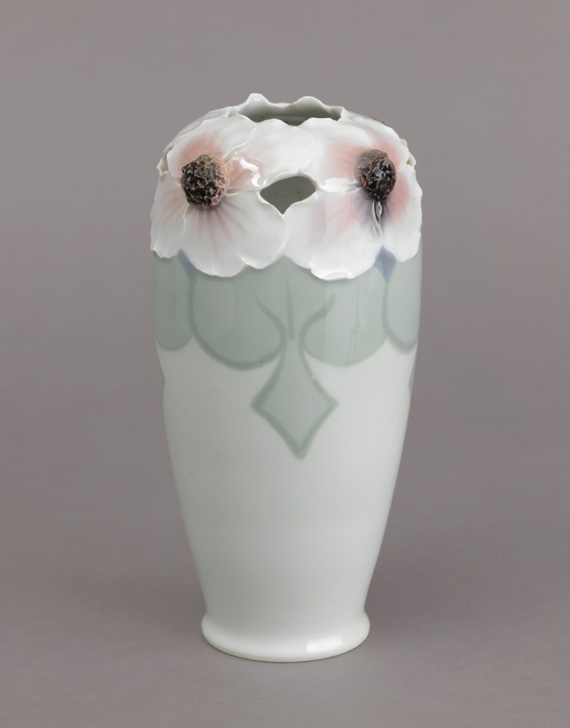 This is a Vase. It was manufactured by Rorstrand. It is dated ca. 1900 and we acquired it in 1994. Its medium is porcelain. It is a part of the Product Design and Decorative Arts department.