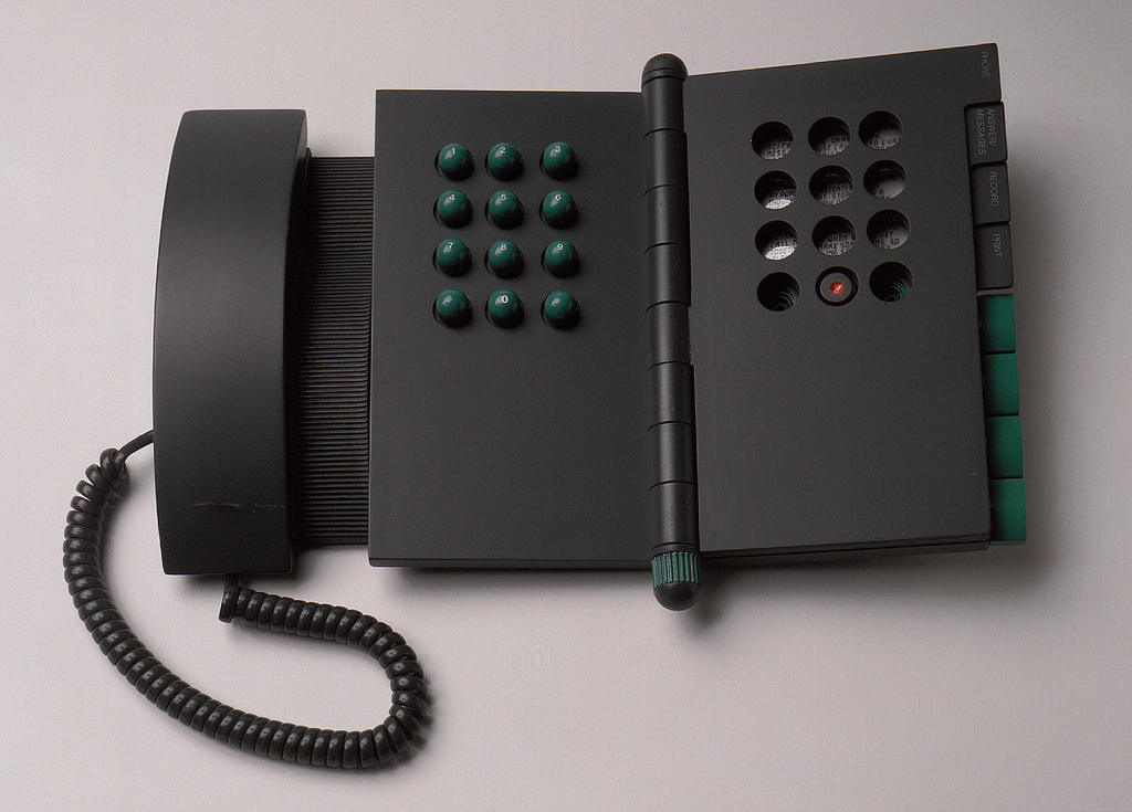 This is a telephone. It was designed by Lisa Krohn and co-designed by Tucker Viemeister. It is dated designed 1987, made 1988 and we acquired it in 1994. Its medium is wood, plastic, paint. It is a part of the Product Design and Decorative Arts department.