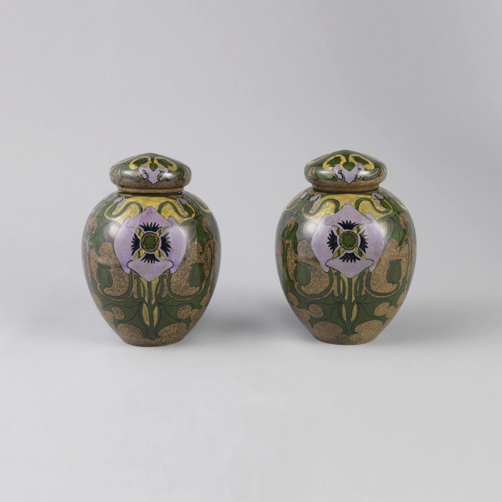 Ginger Jar Vase; Designed by Jan Willem Mijnlief (1862 – 1937); Manufactured by Holland Pottery, Utrecht; Netherlands; earthenware; (a,b: overall): 17 x 11.3 cm (6 11/16 x 4 7/16 in.); Gift of Justin G. Schiller; 1994-66-32-a,b