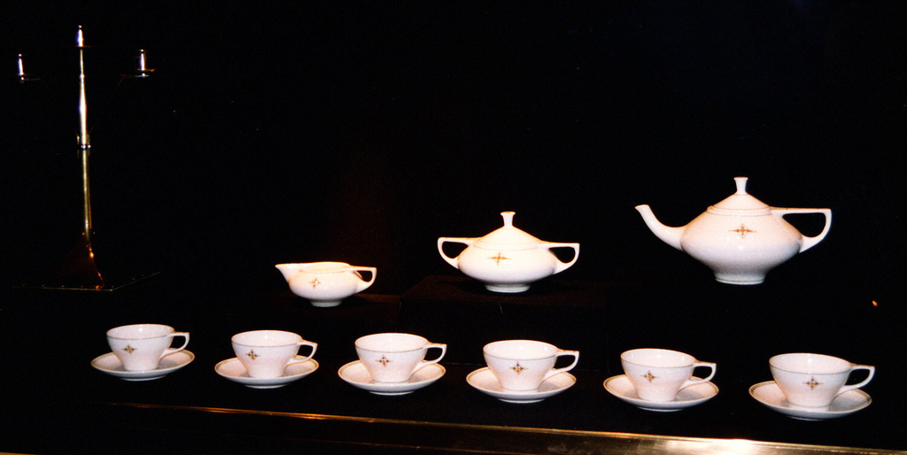 This is a cup and saucer. It was designed by Christian Johannes van der Hoef and manufactured by Amphora Factory. It is dated ca. 1908 and we acquired it in 1994. Its medium is earthenware. It is a part of the Product Design and Decorative Arts department.