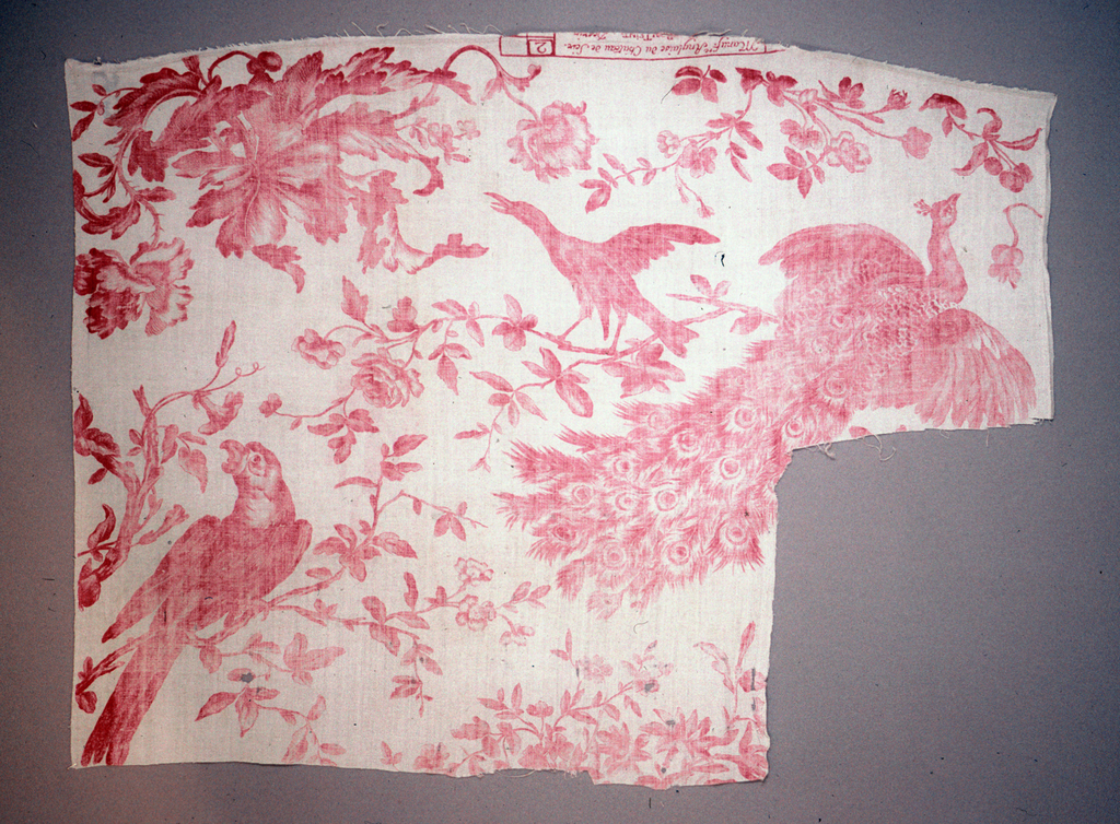 This is a Fragment with chef. It was company: Gayet et Montgirod and manufactured by Manufacture Anglaise du Chateau de Sevres. We acquired it in 1994. Its medium is plain weave linen warp, cotton weft and its technique is printed by engraved plate on plain weave foundation. It is a part of the Textiles department.