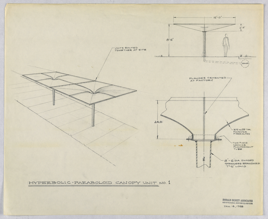 Inscribed in graphite, lower margin: HYPERBOLIC-PARABOLOID CANOPY UNIT NO. 1; lower right: Jan. 16, 1958