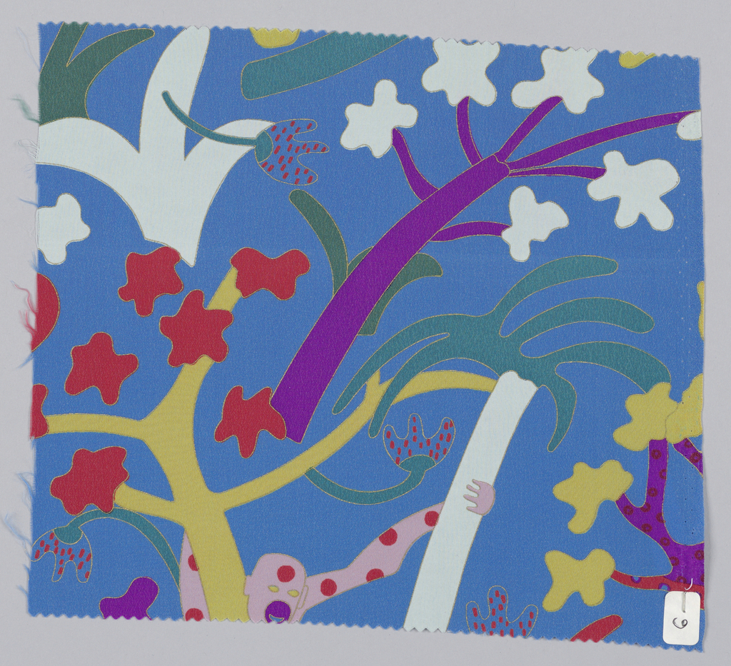 This is a Sample. It was designed by Nathalie Du Pasquier. It is dated 1981–83 and we acquired it in 1995. Its technique is printed. It is a part of the Textiles department.