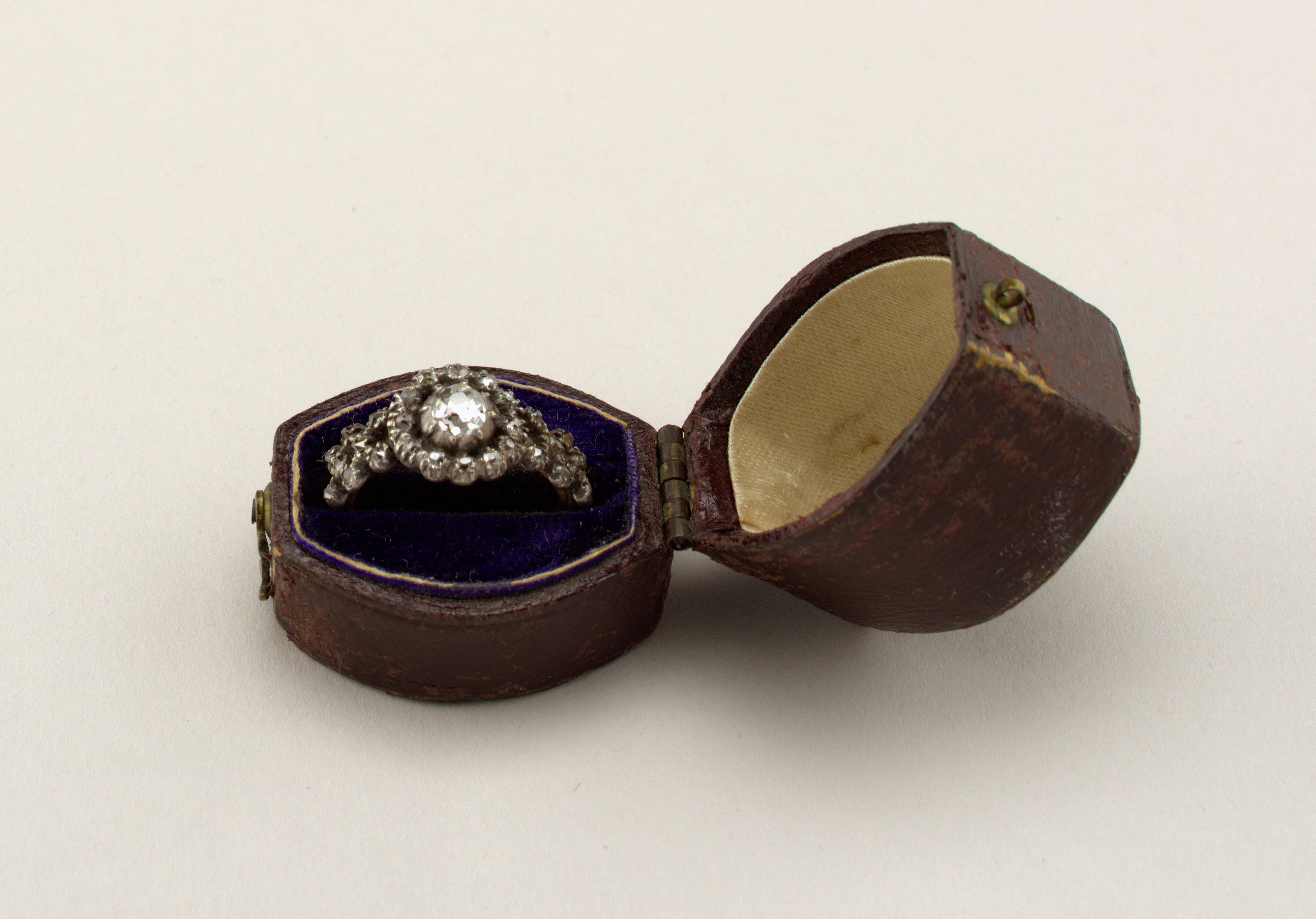 This is a Case. It is dated ca. 1750–1800 and we acquired it in 1995. Its medium is gold, diamonds, leather (case). It is a part of the Product Design and Decorative Arts department.