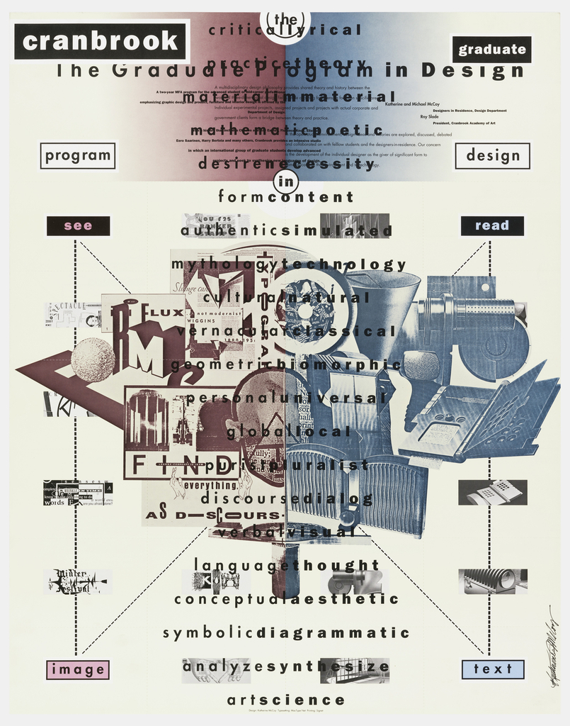 Poster, Cranbrook: The Graduate Program in Design; Designed by Katherine McCoy (American, b. 1945); USA; Support: paper; 71.1 x 55.9 cm (28 x 22 in.); Gift of Katherine McCoy; 1995-162-17