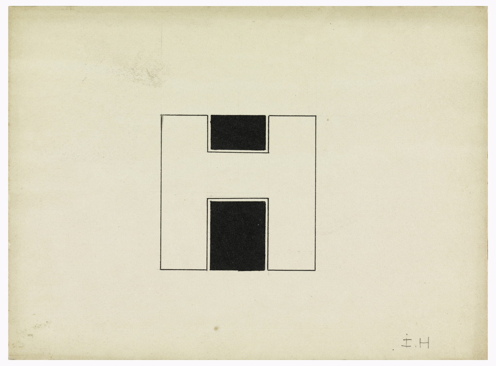 Drawing, Design for a Monogram: I. H.; Designed by Jean Elysée Puiforcat (French, 1897–1945); France; pen and brush and black ink, graphite on cream illustration board; 11.3 X 15.4 cm (4 7/16 X 6 1/16 in.); Gift of John Finguerra in memory of his brother Jim Finguerra; 1995-164-89