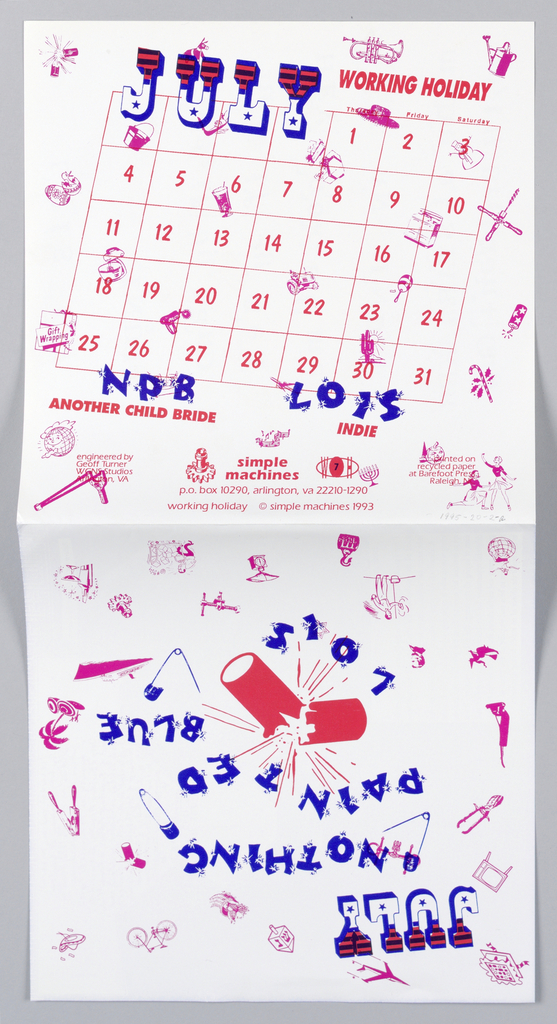 Record Sleeve, Working Holiday Special July: Nothing Painted Blue; USA; lithograph on paper; (overall): 18.5 x 18.4 cm (7 5/16 x 7 1/4 in.); Gift of Simple Machines; 1995-20-2-a/d