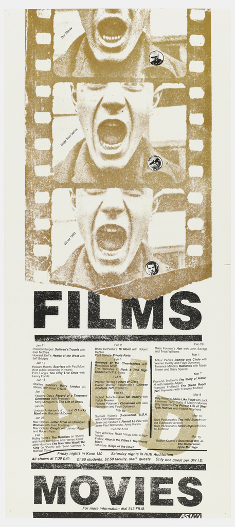 Poster, Films/Movies; Designed by Art Chantry (American, b. 1954); USA; lithograph on white wove paper; 74.2 x 33 cm (29 3/16 in. x 13 in.); Gift of Art Chantry; 1995-69-52