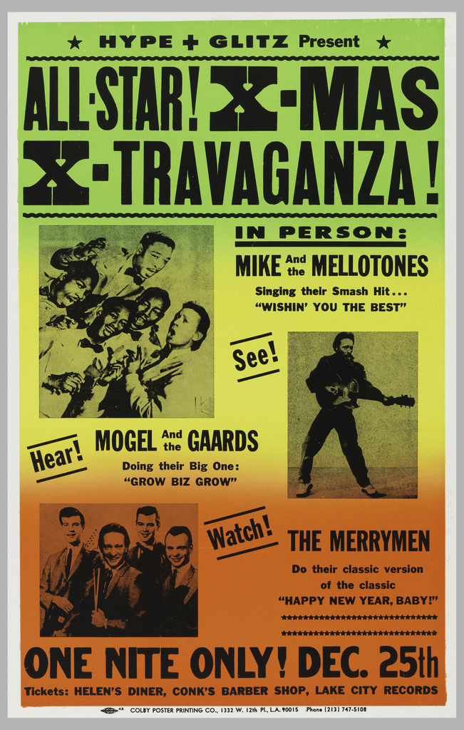 Poster, All-Star! X-Mas X-travaganza!; Designed by Art Chantry (American, b. 1954); Printed by Colby Poster Printing Co.; USA; lithograph on paper; 55.9 x 35.7 cm (22 in. x 14 1/16 in.); Gift of Art Chantry; 1995-69-86
