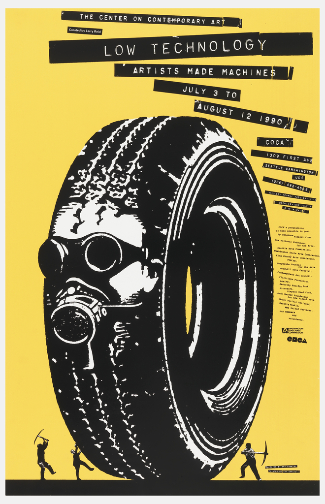 Poster, Low Technology; Designed by Art Chantry (American, b. 1954); Printed by Art Garcia; Client: Center on Contemporary Art; USA; screenprint on white paper; H x W: 77.9 × 50.3 cm (30 11/16 × 19 13/16 in.); Gift of Art Chantry; 1995-69-89