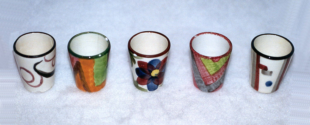 This is a Liqueur cup. It was manufactured by Schramberger Majolikafabrik. It is dated 1920–40 and we acquired it in 1996. Its medium is glazed earthenware. It is a part of the Product Design and Decorative Arts department.