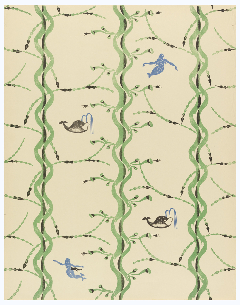 Sidewall, Mermaid; Produced by The Curwen Press (United Kingdom); England; lithograph from linocut; Overall: 71.5 x 56 cm (28 1/8 x 22 1/16 in.); Museum purchase from Smithsonian Institution Collections Acquisition Program and Pauline C. Noyes Funds; 1996-32-5