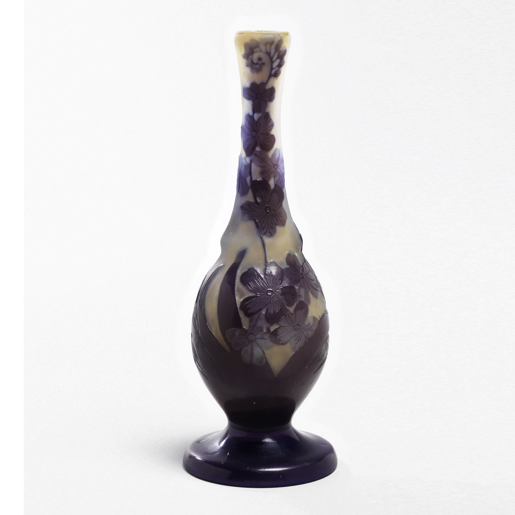 This is a Vase. It was designed by Emile Gallé and manufactured by Gallé. It is dated late 19th–early 20th century and we acquired it in 1996. Its medium is glass. It is a part of the Product Design and Decorative Arts department.