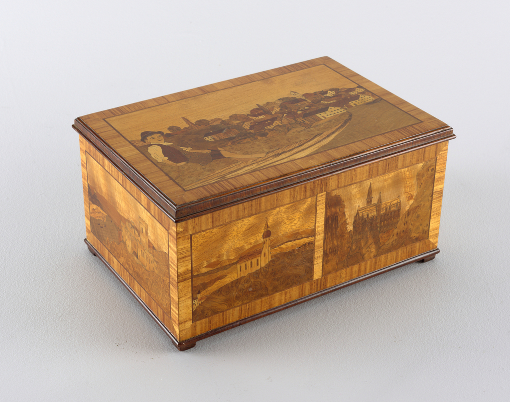 Box (USA); Engelbert Rehle; various woods, metal; H x W x D: 11.2 x 22.4 x 15.4 cm (4 7/16 x 8 13/16 x 6 1/16 in.); Gift in memory of Engelbert Rehle from his wife, Anna Rehle, and daughter, Sister Mary Perpetua Rehle, S.C.C.; 1996-66-1