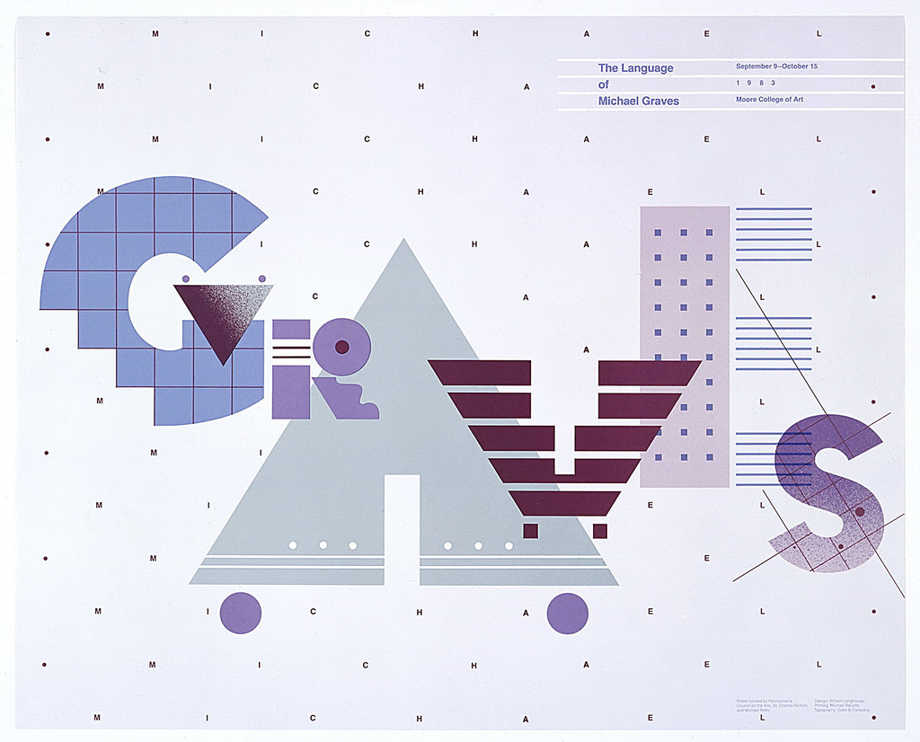 Poster, The Language of Michael Graves; Designed by William Longhauser (1947); USA; offset lithograph on paper support: paper; 44.1 x 54.3 cm (17 3/8 x 21 3/8 in.); Gift of William Longhauser; 1996-77-1