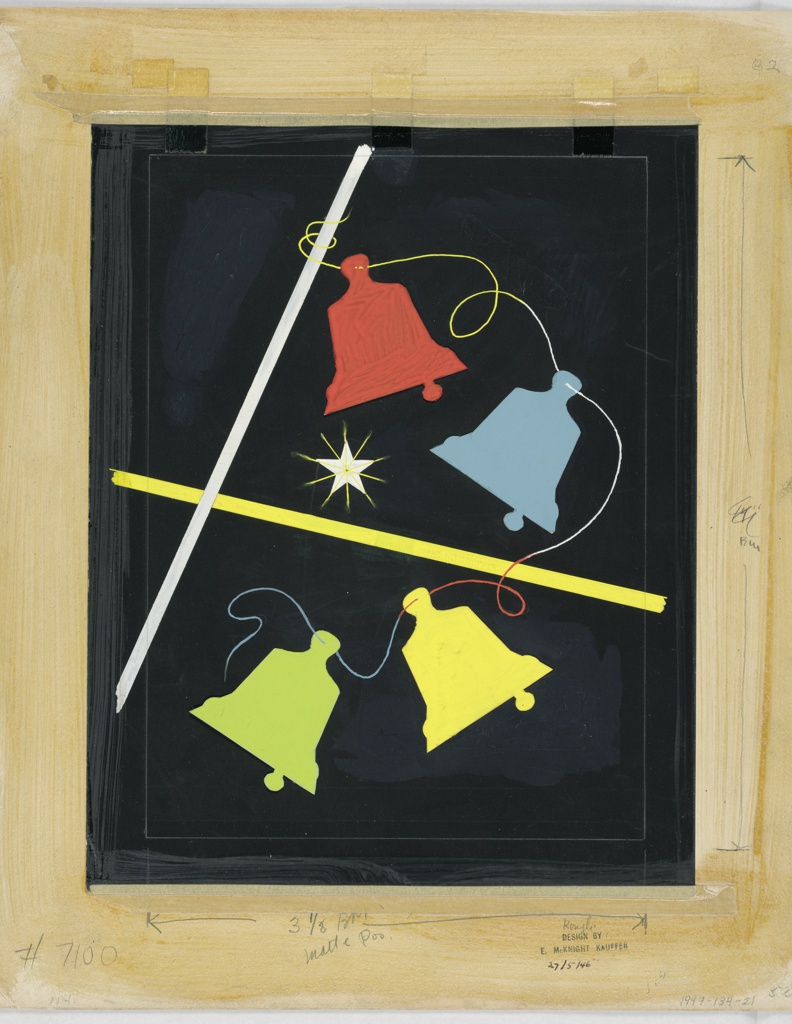 Collage, Design for a Magazine Cover with Bells; Designed by Edward McKnight Kauffer (American, active England, 1890–1954); Client: Brighton Warp and Weft; England; brush and gouache, paper collage, graphite on heavy paper, mounted on illustration board; 45.8 × 38.2 cm (18 1/16 × 15 1/16 in.); Gift of Grace Schulman; 1997-134-21