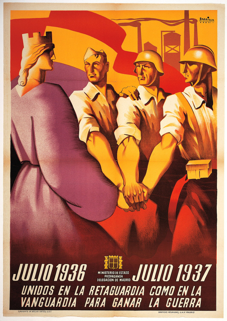 Poster, Julio 1936/ Julio 1937/ Unidos en la retaguardia como en la vanguardia para ganar la guerra (United in the rear as at the front in order to win the war: July 1936-July 1937)