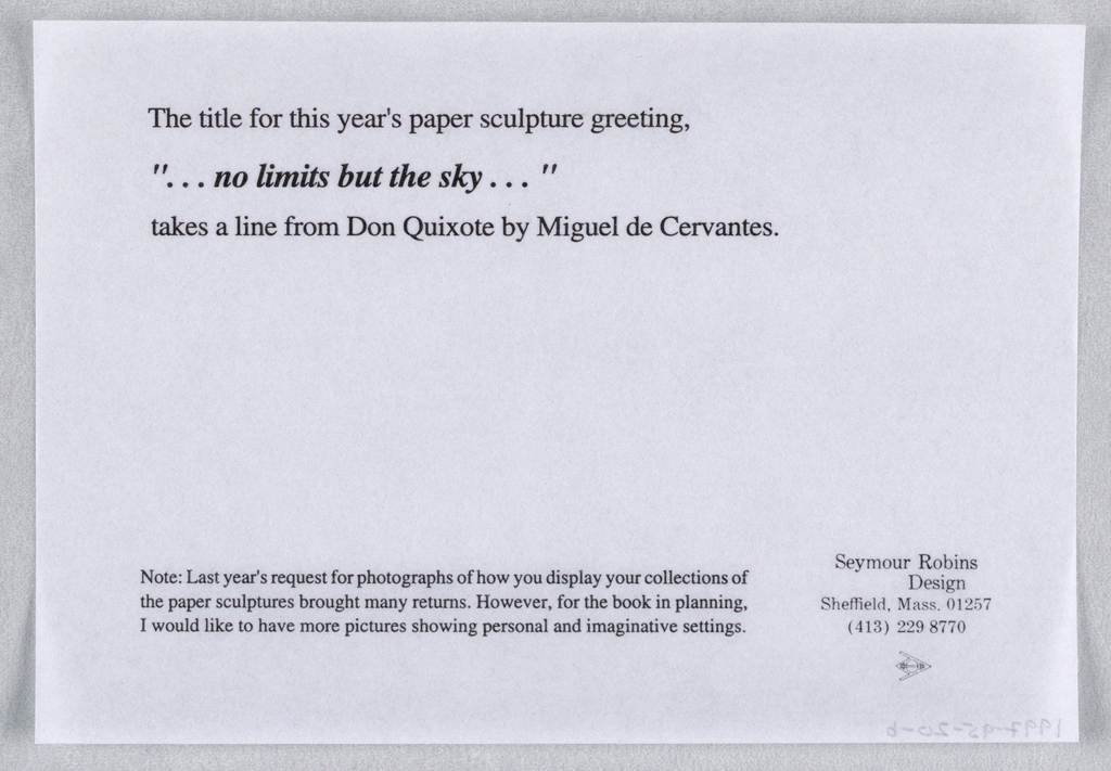 Card, No Limit But the sky, 1993; Designed by Seymour Robins (1962 - 2011); Gift of Seymour Robins; 1997-95-20-a/c