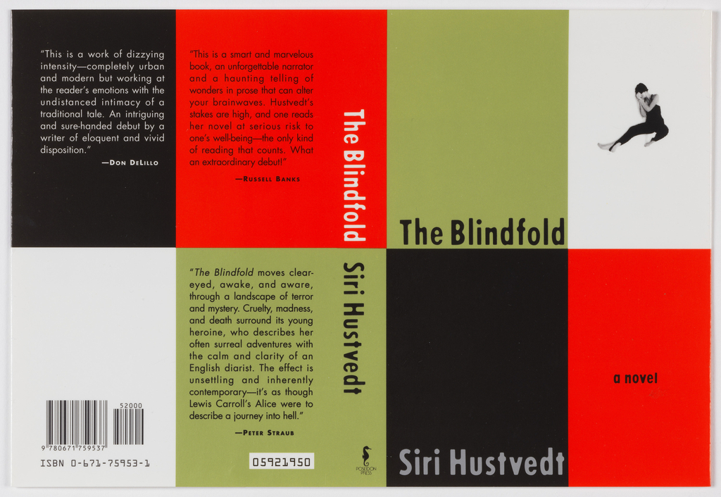 Book Cover, The Blindfold; Designed by Carin Goldberg (American, b. 1953); Written by Siri Hustvedt (American, b. 1955); Published by Poseidon Press; USA; lithograph on paper; 19.8 × 29.2 cm (7 13/16 × 11 1/2 in.); Gift of Steven Heller; 1996-74-99