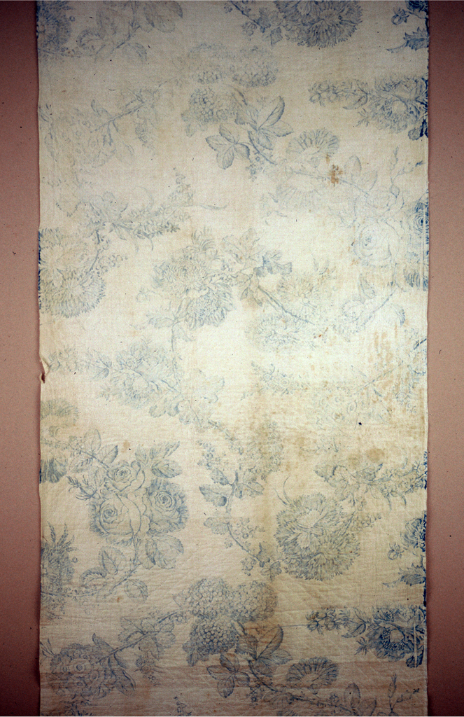 This is a Fragment. It was made by Bromley Hall. It is dated designed 1765–1770, printed after 1774 and we acquired it in 1995. Its medium is cotton and its technique is printed by engraved plate on plain weave. It is a part of the Textiles department.