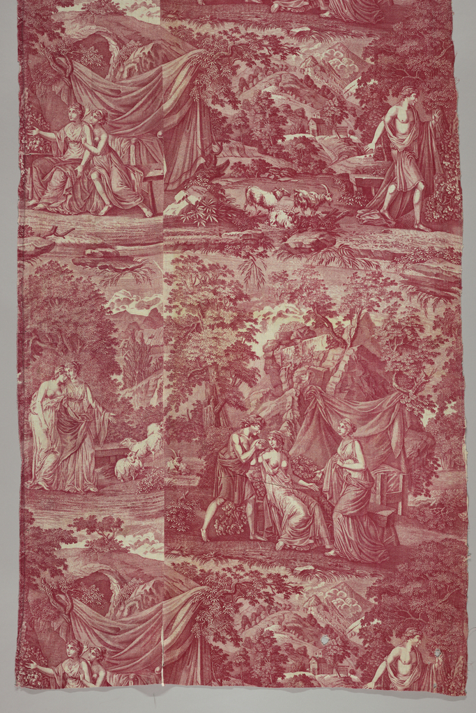 This is a Textile. It is dated ca. 1800 and we acquired it in 1995. Its medium is cotton and its technique is printed by engraved plate on plain weave. It is a part of the Textiles department.